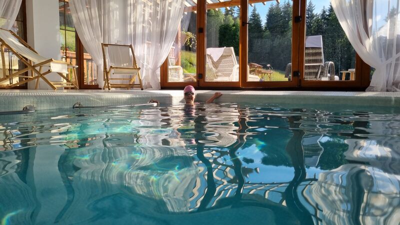 Pensiunea se mândrește cu o piscină modernă și elegantă, un adevărat punct de atracție atât vara, cât și iarna, unde te poți bucura de momente de răsfăț și relaxare. Apa limpede, decorul contemporan și priveliștea încântătoare asupra munților creează o atmosferă de vis.